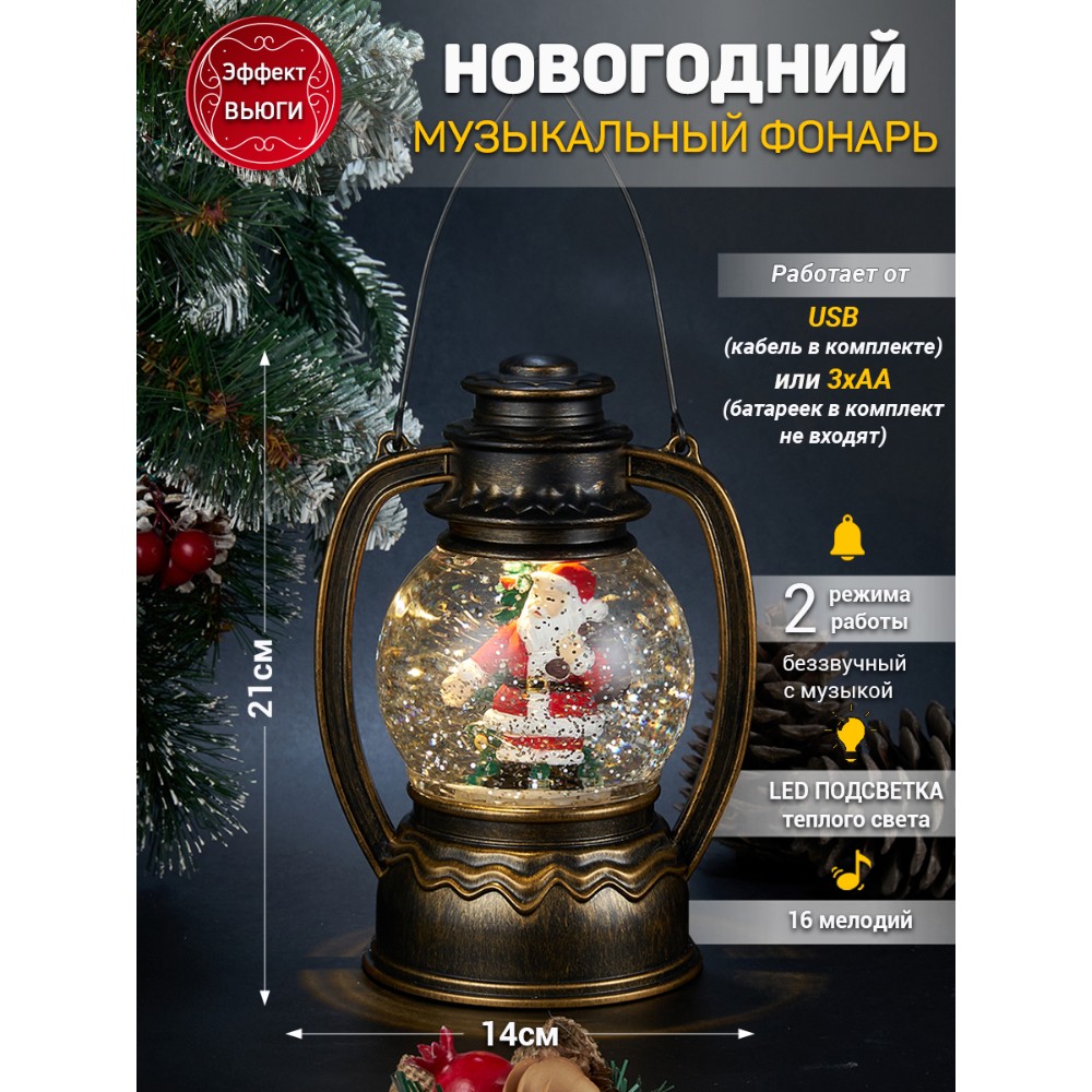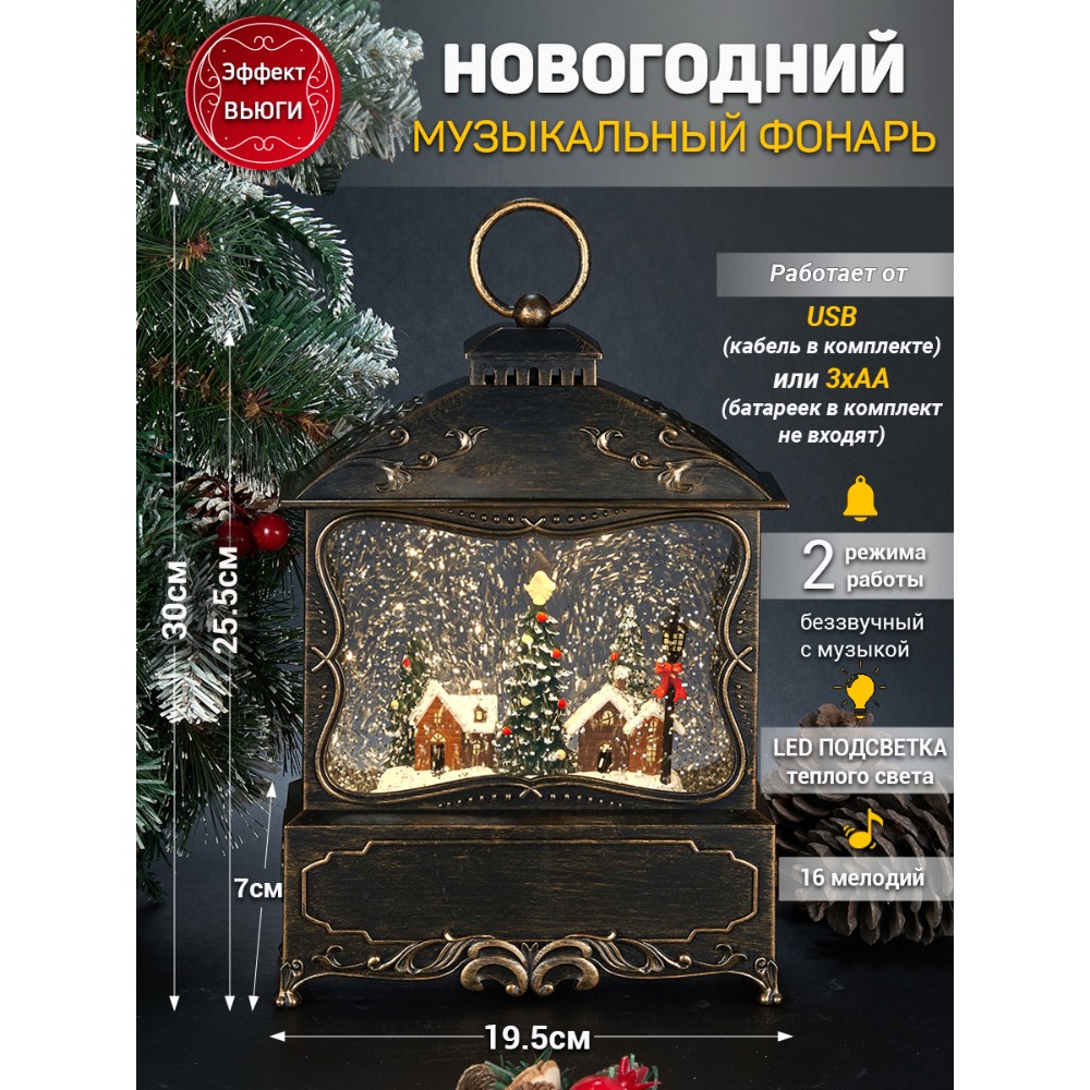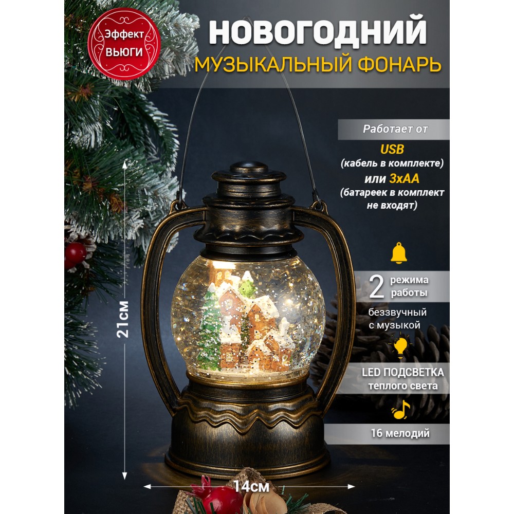 Новогодний Фонарь LED c эффектом снегопада