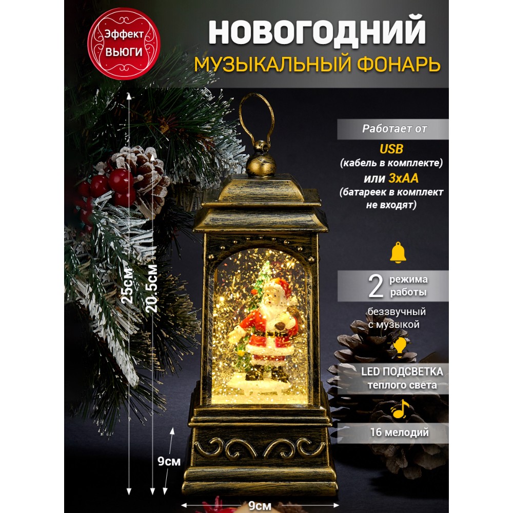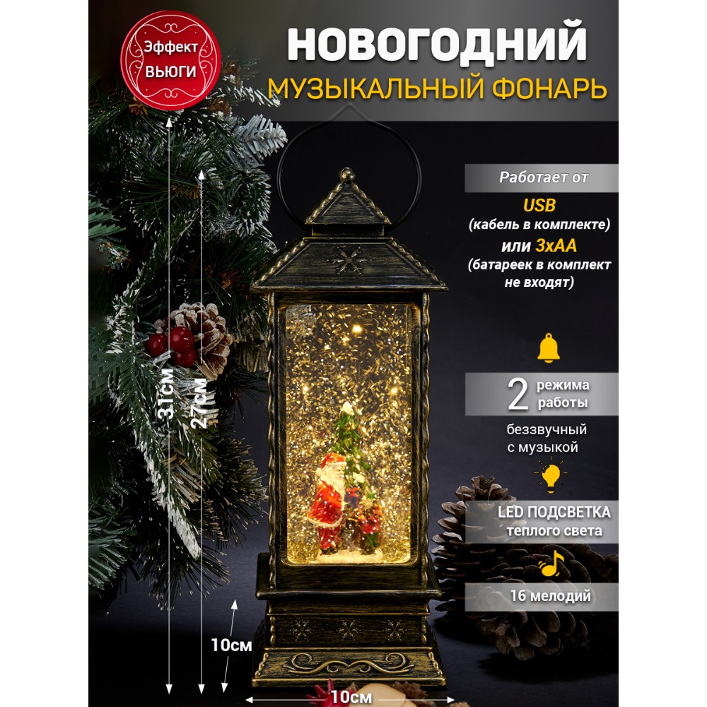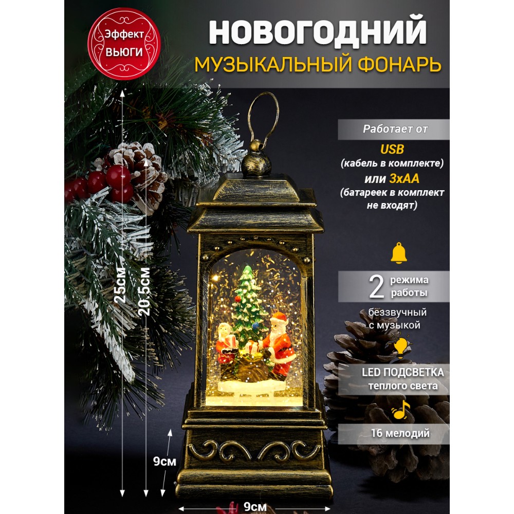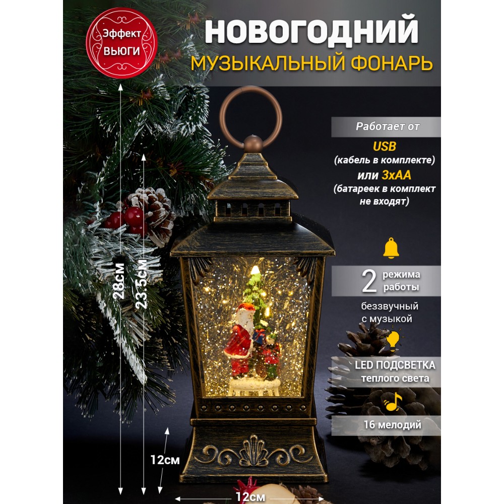 Новогодний Фонарь LED c эффектом снегопада