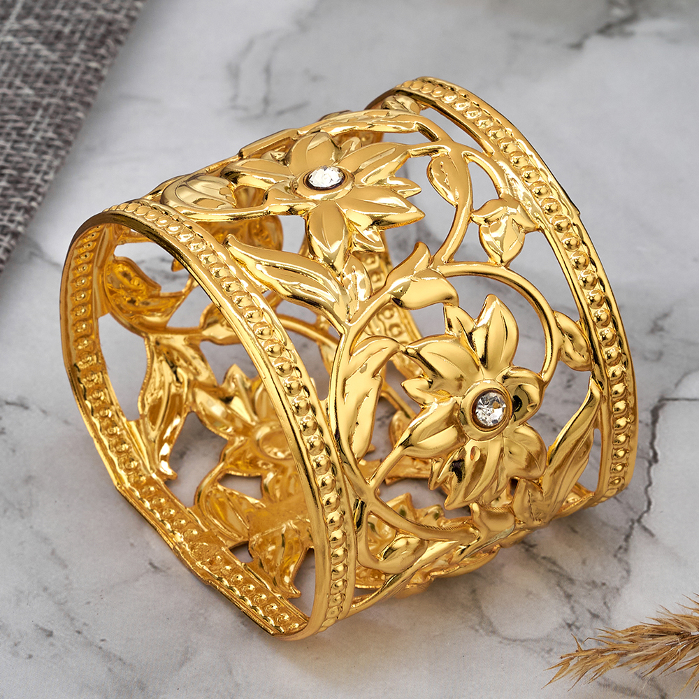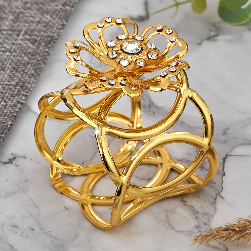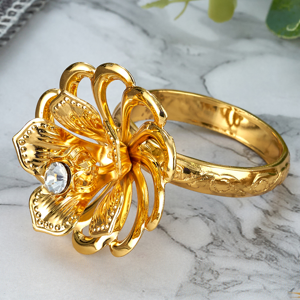 Каждое кольцо декорированно цветком и кристаллами.