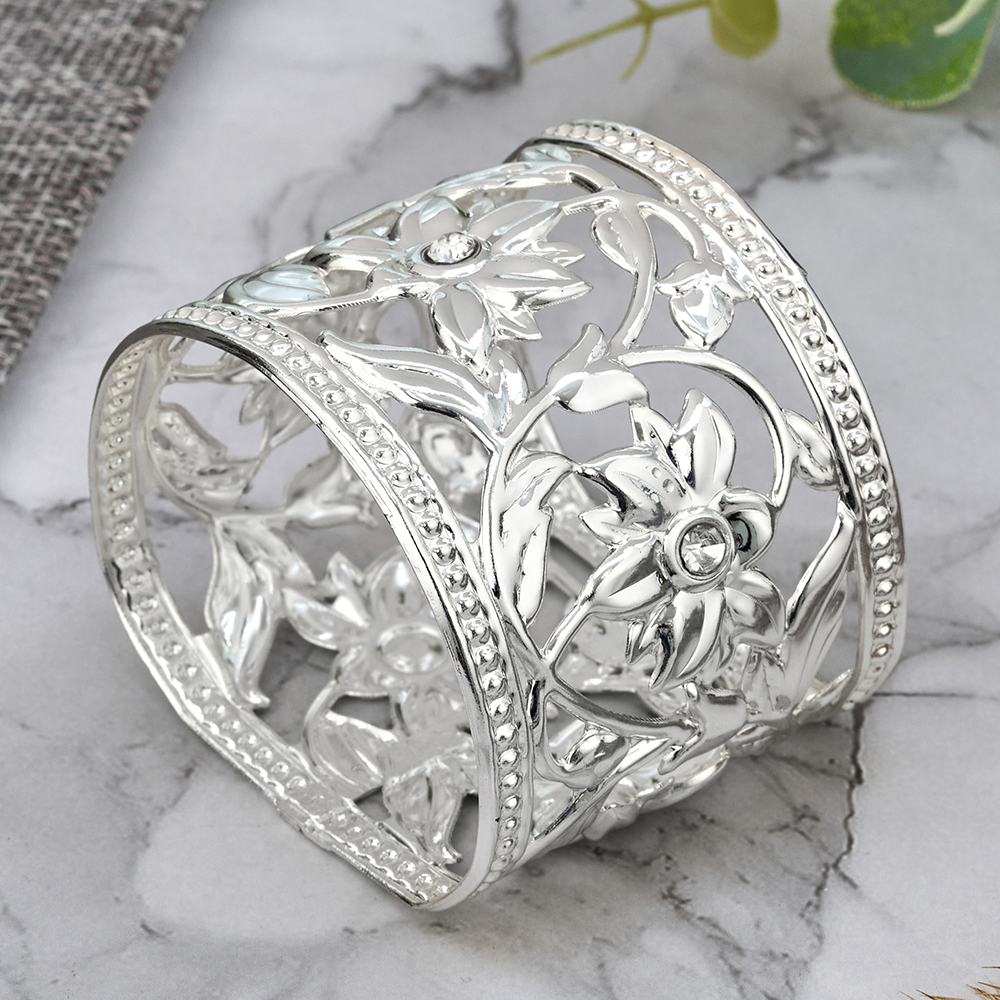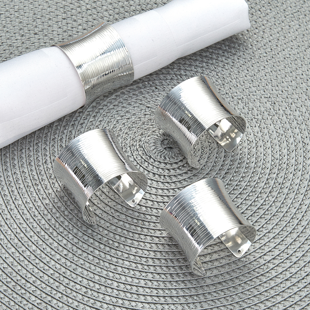 Кольца для салфеток металлические - отличное решение не только для сервировки праздничного стола, но и для каждодневного пользования. Комплект состоит из 6 колец диаметром 4 см и высотой 2,5 см и выполнен из качественной пищевой стали с покрытием 18К Silver Plated, у изделия проработаны даже самые м..