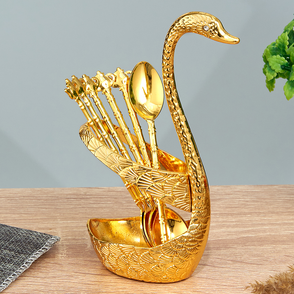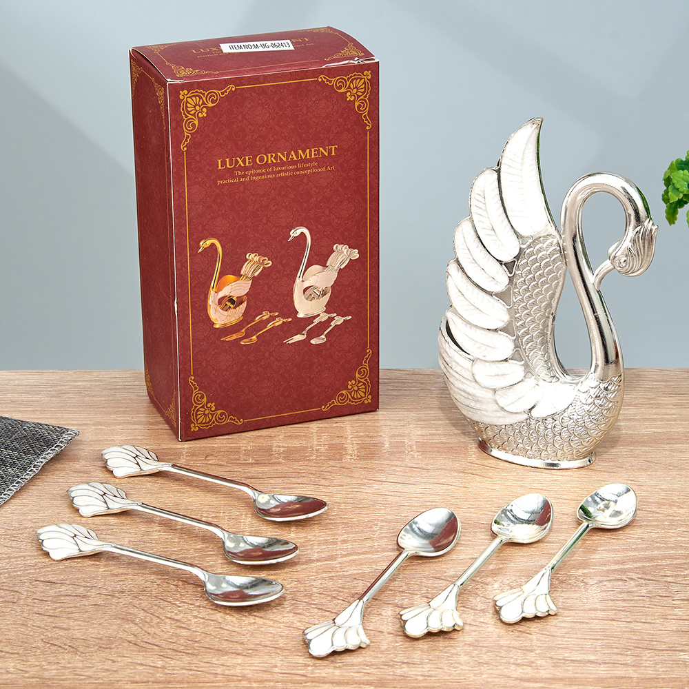 Набор из 6-ти десертных ложек на подставке в виде лебедя,