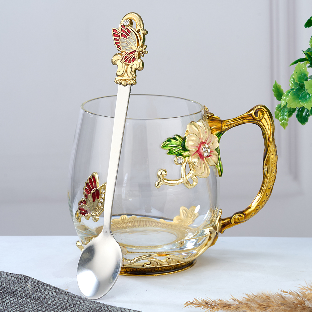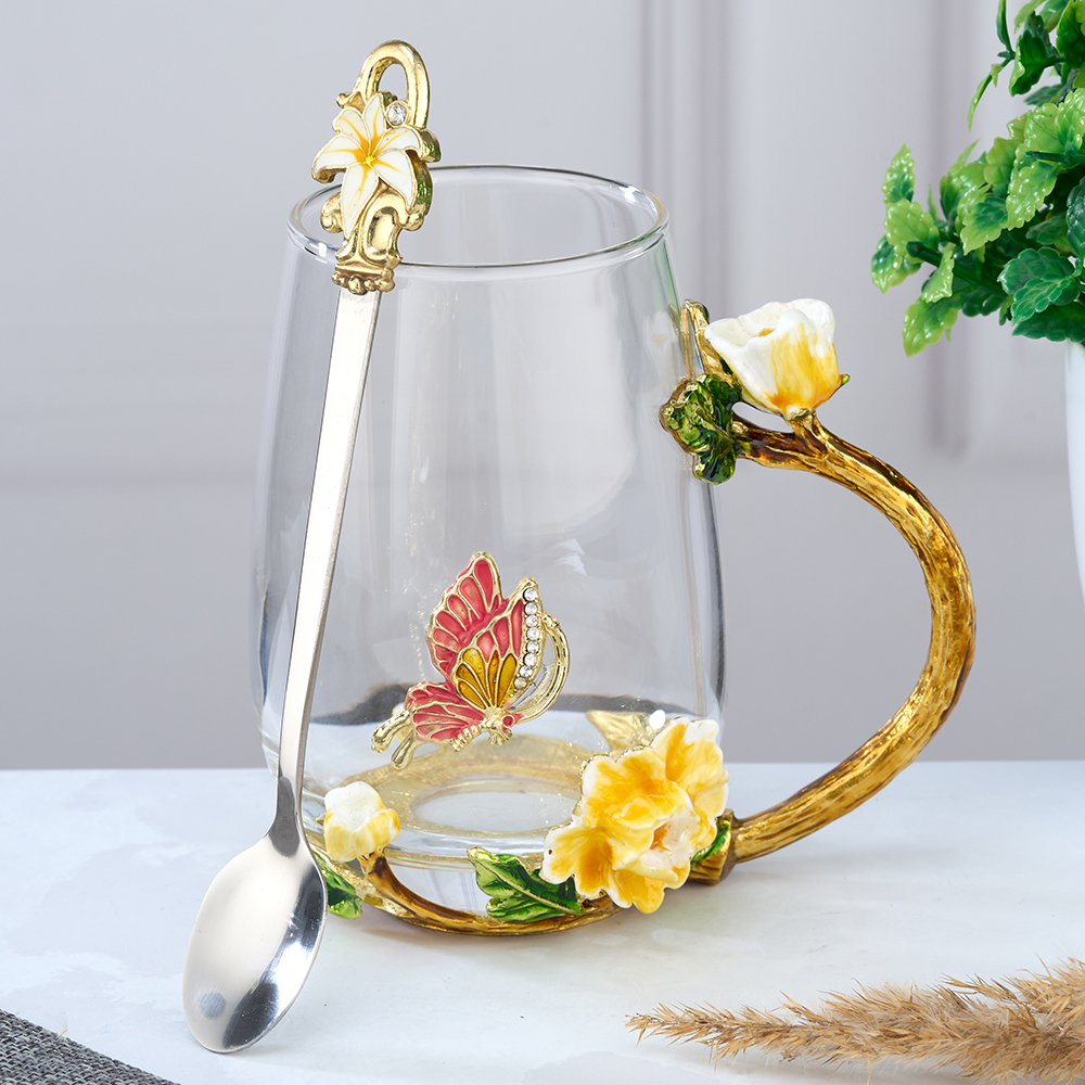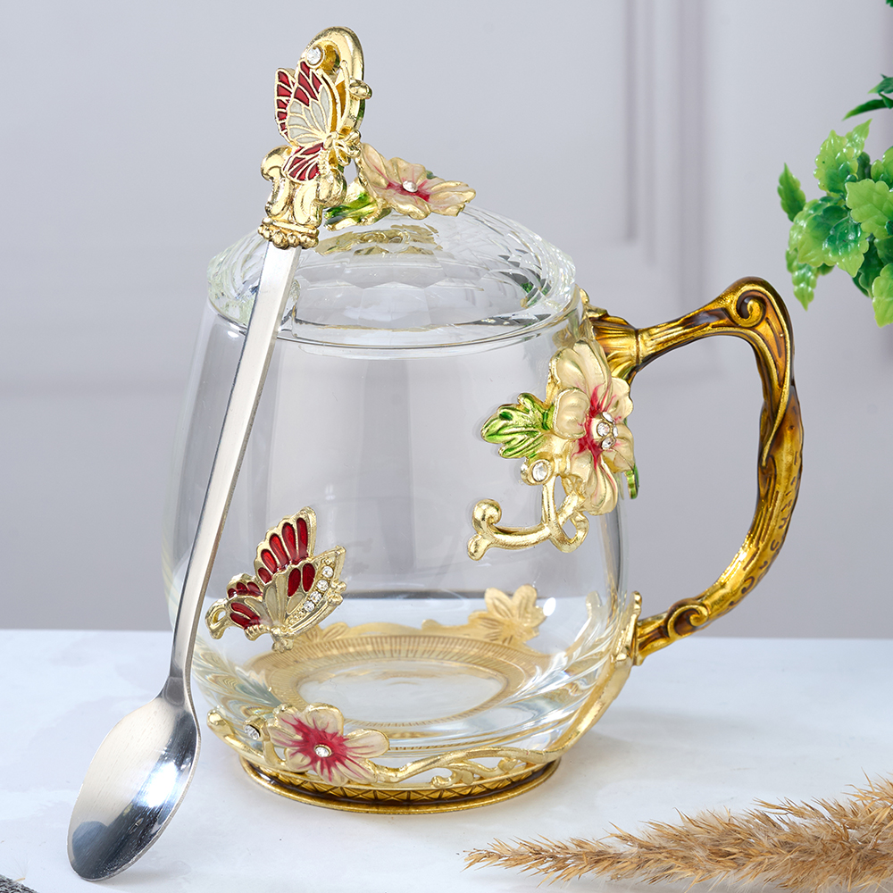Стеклянный чайно-кофейный набор в подарочной коробке. Чайная чашка Бабочка с крышкой и ложечкой в романтическом стиле. Кофейная кружка с ложкой в оригинальном исполнении. Стеклянная кофейная кружка, большого объёма, из стекла, подойдет для горячих и холодных напитков. Чайная чашка с крышечкой выдерж..