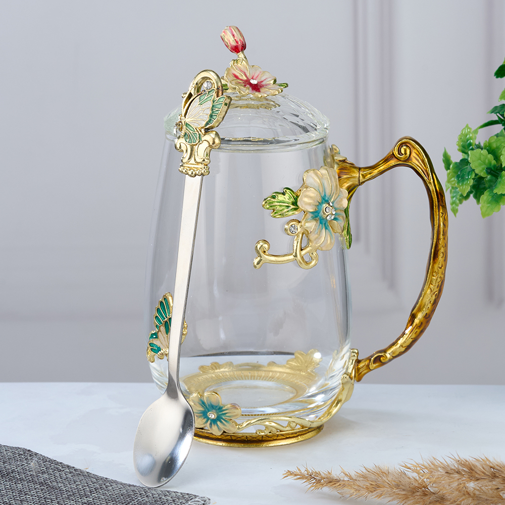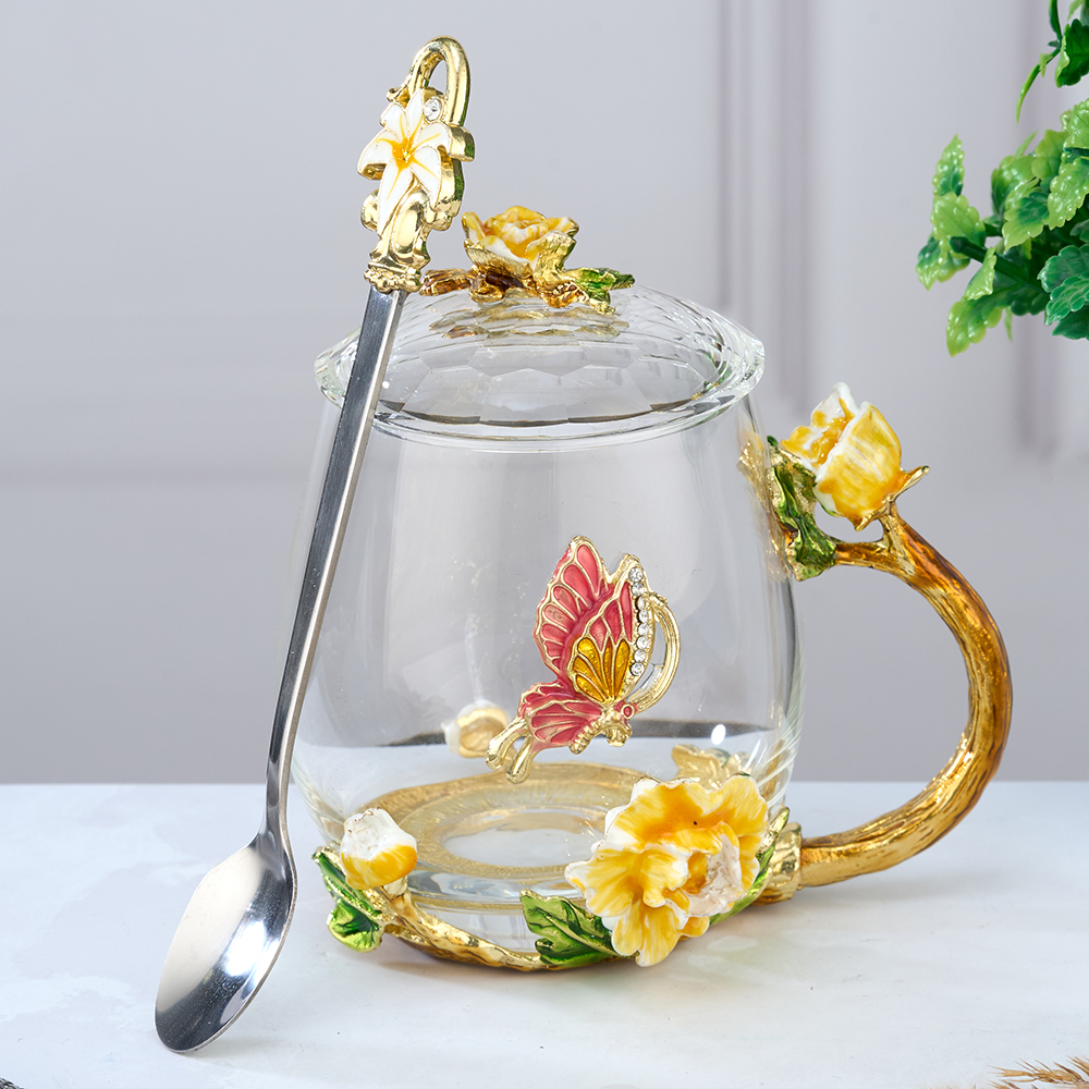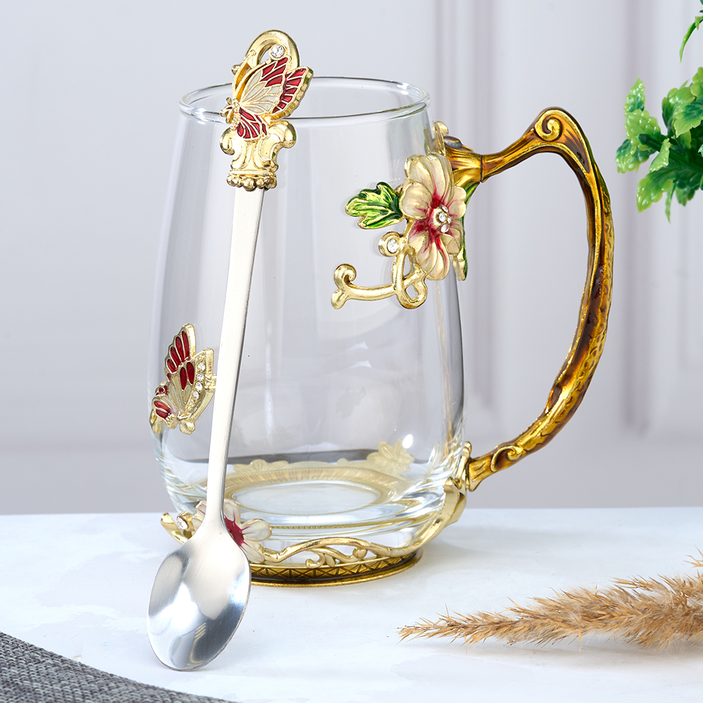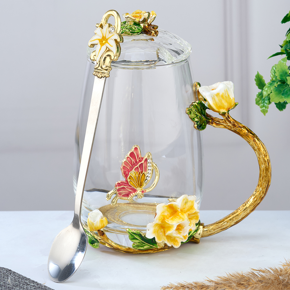 Стеклянный чайно-кофейный набор в подарочной коробке. Чайная чашка Бабочка с крышкой и ложечкой в романтическом стиле. Кофейная кружка с ложкой в оригинальном исполнении. Стеклянная кофейная кружка, большого объёма, из стекла, подойдет для горячих и холодных напитков. Чайная чашка с крышечкой выдерж..