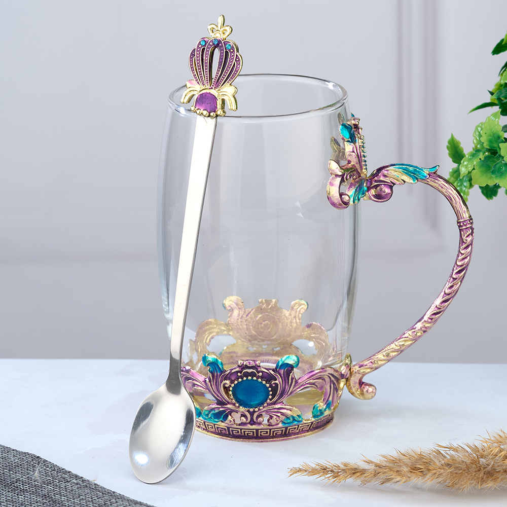 Стеклянный чайно-кофейный набор в подарочной коробке. Чайная чашка Корона с ложечкой в романтическом стиле. Кофейная кружка с ложкой в оригинальном исполнении. Стеклянная кофейная кружка, большого объёма, 400 мл, из стекла, подойдет для горячих и холодных напитков. Чайная чашка выдерживает температу..