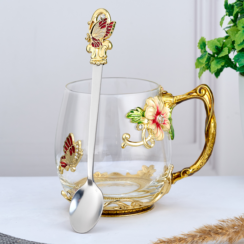 Стеклянный чайно-кофейный набор в подарочной коробке с Бабочкой. Чайная чашка Бабочка с ложечкой в романтическом стиле. Кофейная кружка с ложкой в оригинальном исполнении. Стеклянная кофейная кружка, большого объёма, из стекла, подойдет для горячих и холодных напитков. Чайная чашка с ложкой выдержив..